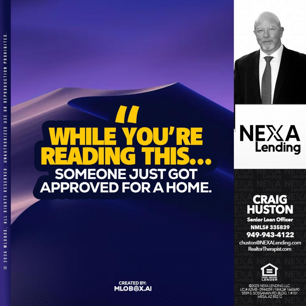 I WHILE YOU ARE - Craig Huston -Senior Loan OfficerHi, my name is Craig Huston. I’m a Loan Officer with NEXA Lending LLC., offering personalized mortgage solutions, fast customized quotes, great rates and service with integrity.