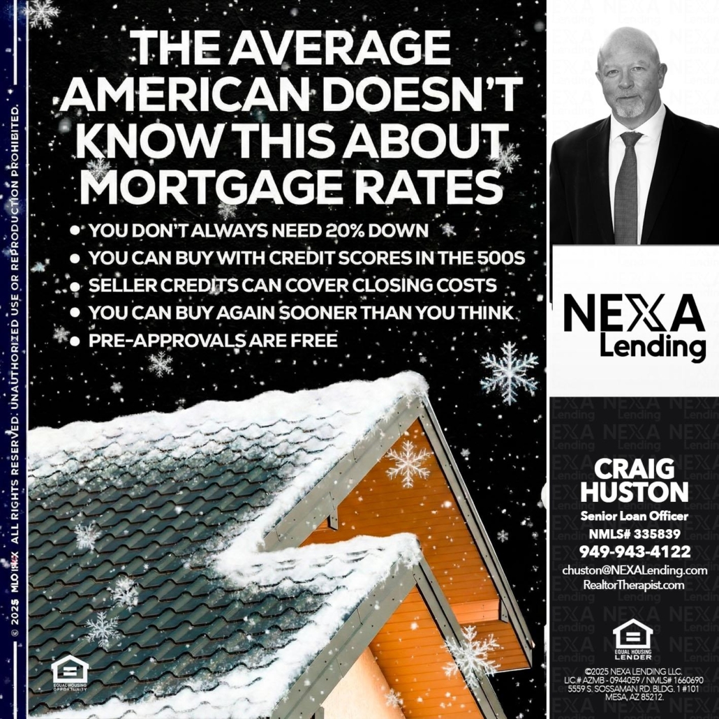 Hi, my name is Craig Huston. I’m a Loan Officer with NEXA Lending LLC., offering personalized mortgage solutions, fast customized quotes, great rates and service with integrity.