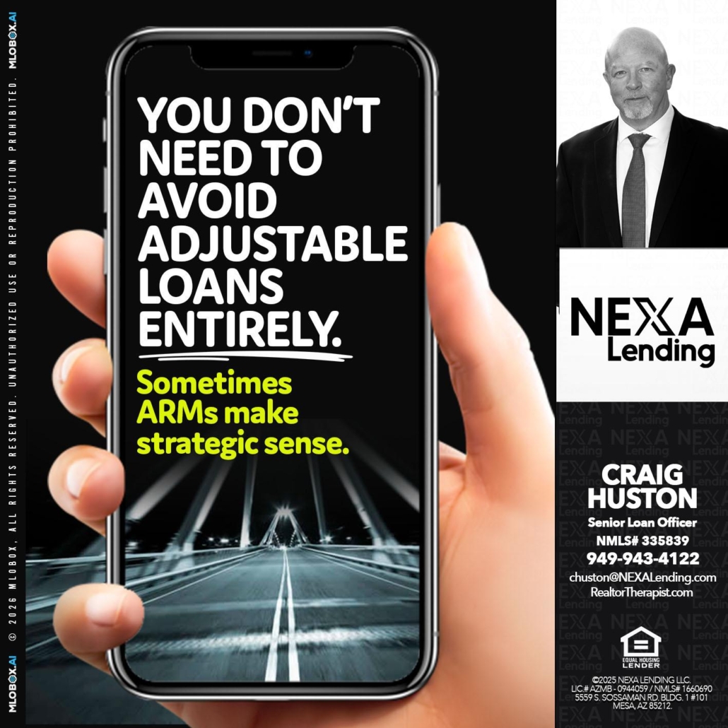 YOU DONT NEED - Craig Huston -Senior Loan OfficerHi, my name is Craig Huston. I’m a Loan Officer with NEXA Lending LLC., offering personalized mortgage solutions, fast customized quotes, great rates and service with integrity.